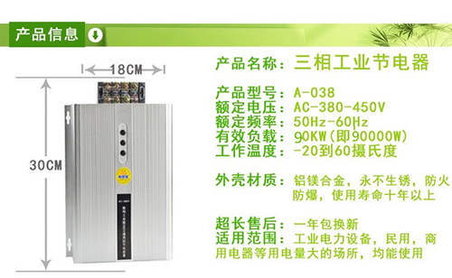 三相电子节电器有效负载90000W功率。